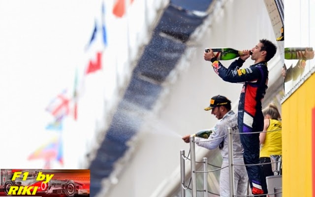 | Ricciardo celebrando su primer triunfo en la F1 en el GP de Canada 2014. |